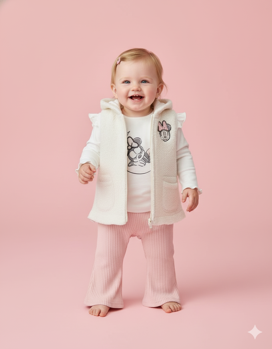 CONJUNTO IMPORTADO 3 PIEZAS MINNIE CHALECO
