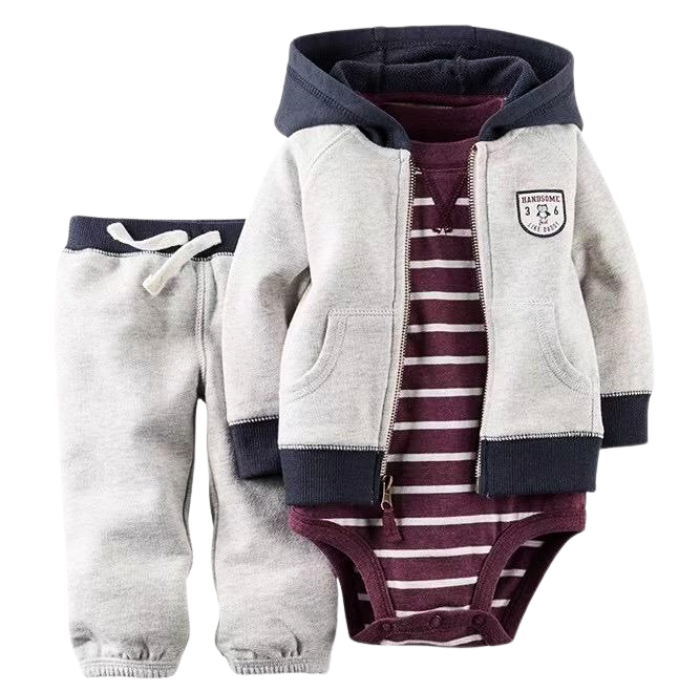 Conjunto importado de sudadera para niño: incluye pantalón, buzo y body a juego. Ideal para mantener a tu peque cómodo, abrigado y con mucho estilo en cualquier momento del día.