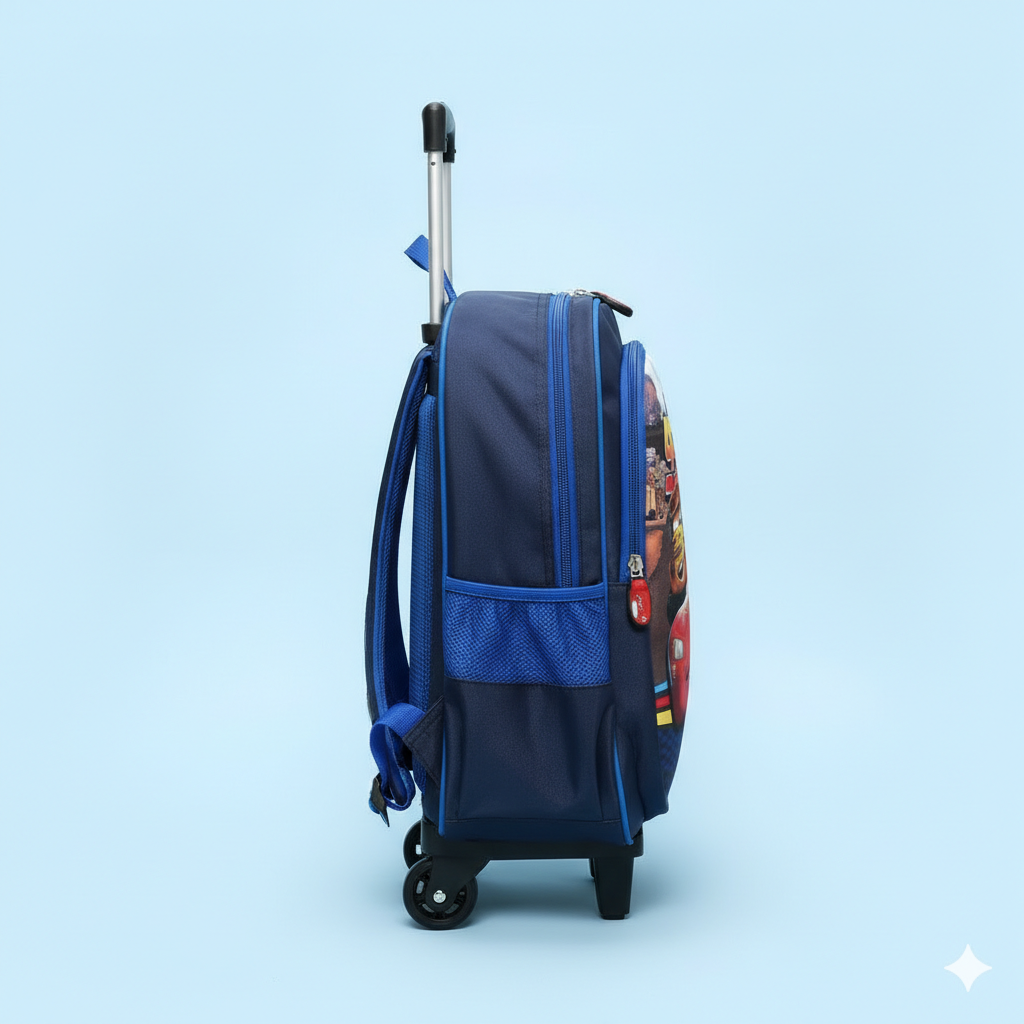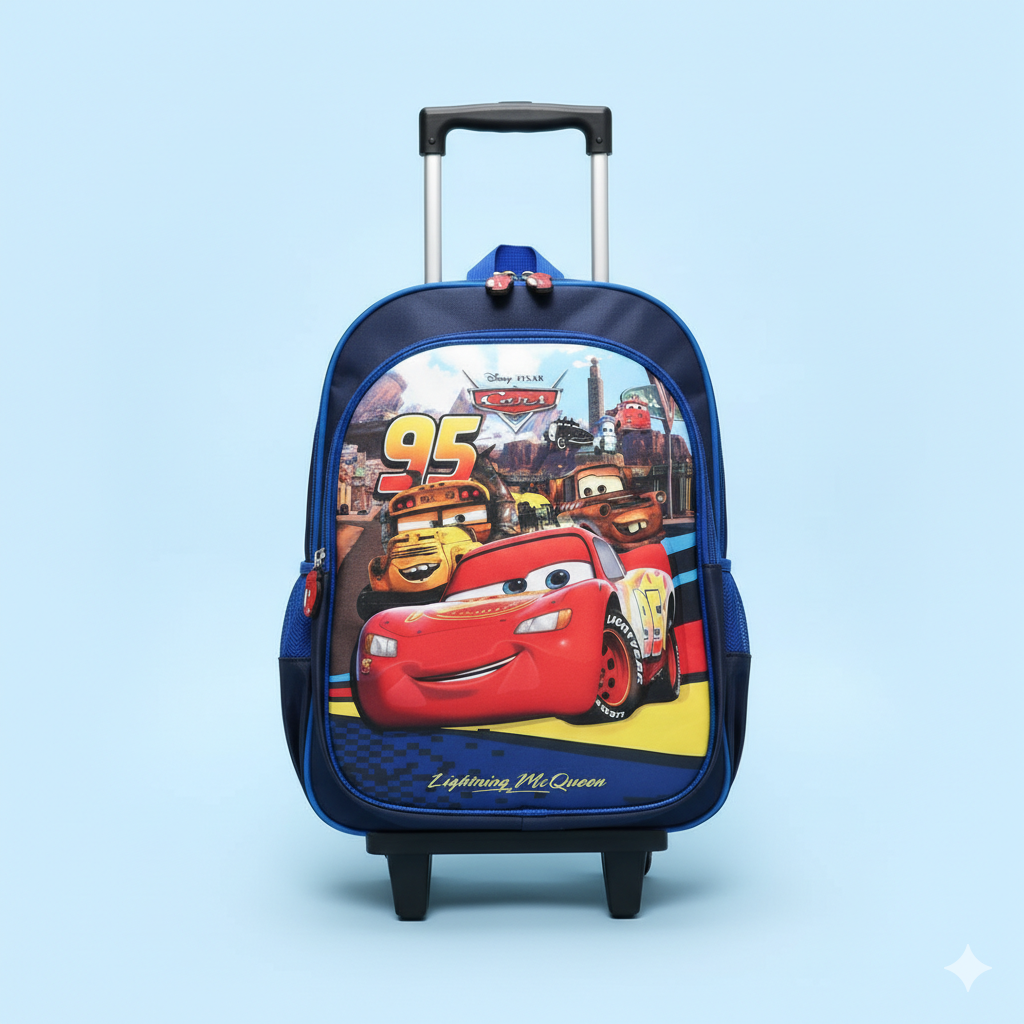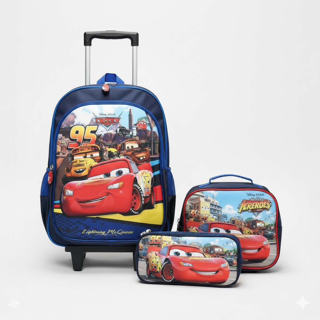 KIT X3 MALETA DOBLE RUEDAS + CARTUCHERA + LONCHERA CARS