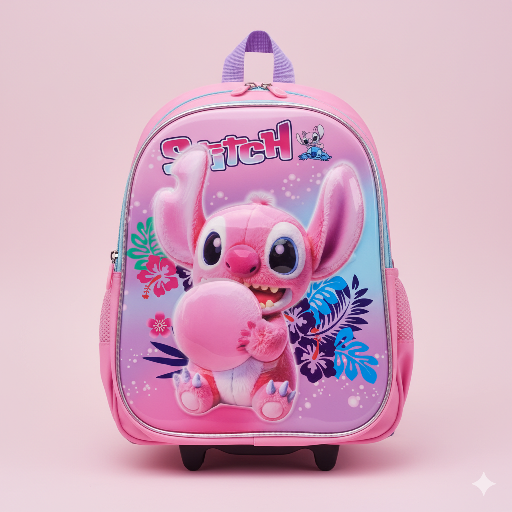 KIT X3 MALETA DOBLE RUEDAS + CARTUCHERA + LONCHERA ANGELA