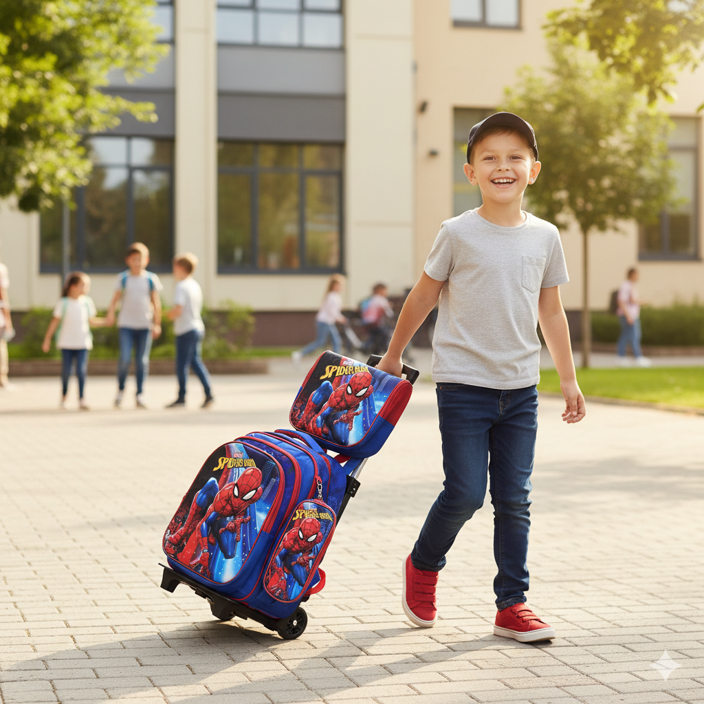 KIT X3 MALETA RUEDAS + CARTUCHERA + LONCHERA SPIDERMAN